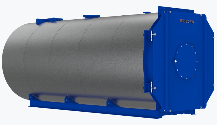 ENTROPIE boiler TT115 is a three-pass flame tube/smoke tube industrial hot water boiler made of steel. The boiler can be manufactured in the power range from 1 MW to 20 MW. The boiler is designed to produce hot water for heat supply of buildings and facilities, to support various purpose production processes.