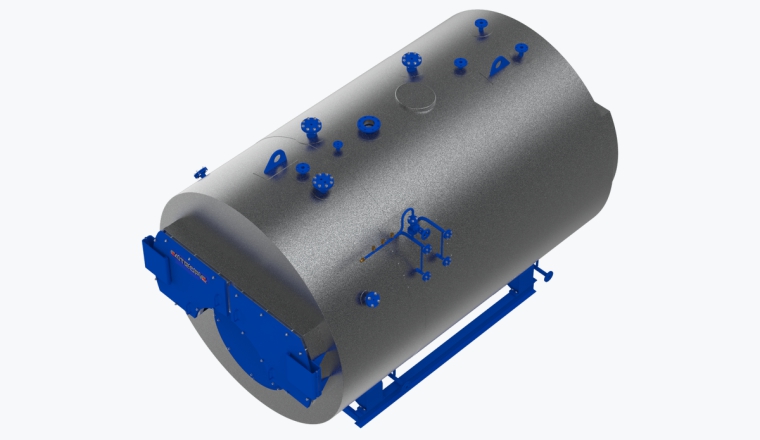 ENTROPIE TT200 steam boilers are steel gasfired, three-way flue gas boilers of horizontal type, fitted with a firebox for pressure-fired fuel combustion. ENTROPIE boiler TT200 are mass produced within a rated steam capacity range from 0,5 to 30 t/h with a design pressure of 8, 12, 16 bar and are designed to produce saturated steam.