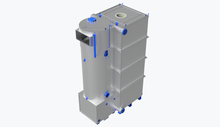 ENTROPIE TT300 is a water-tube industrial hot water boiler. The boiler can be manufactured in the power range from 20 MW to 80 MW. The boiler is designed to produce hot water with a maximum temperature of 170°C and a maximum excess working pressure of 16 bar.